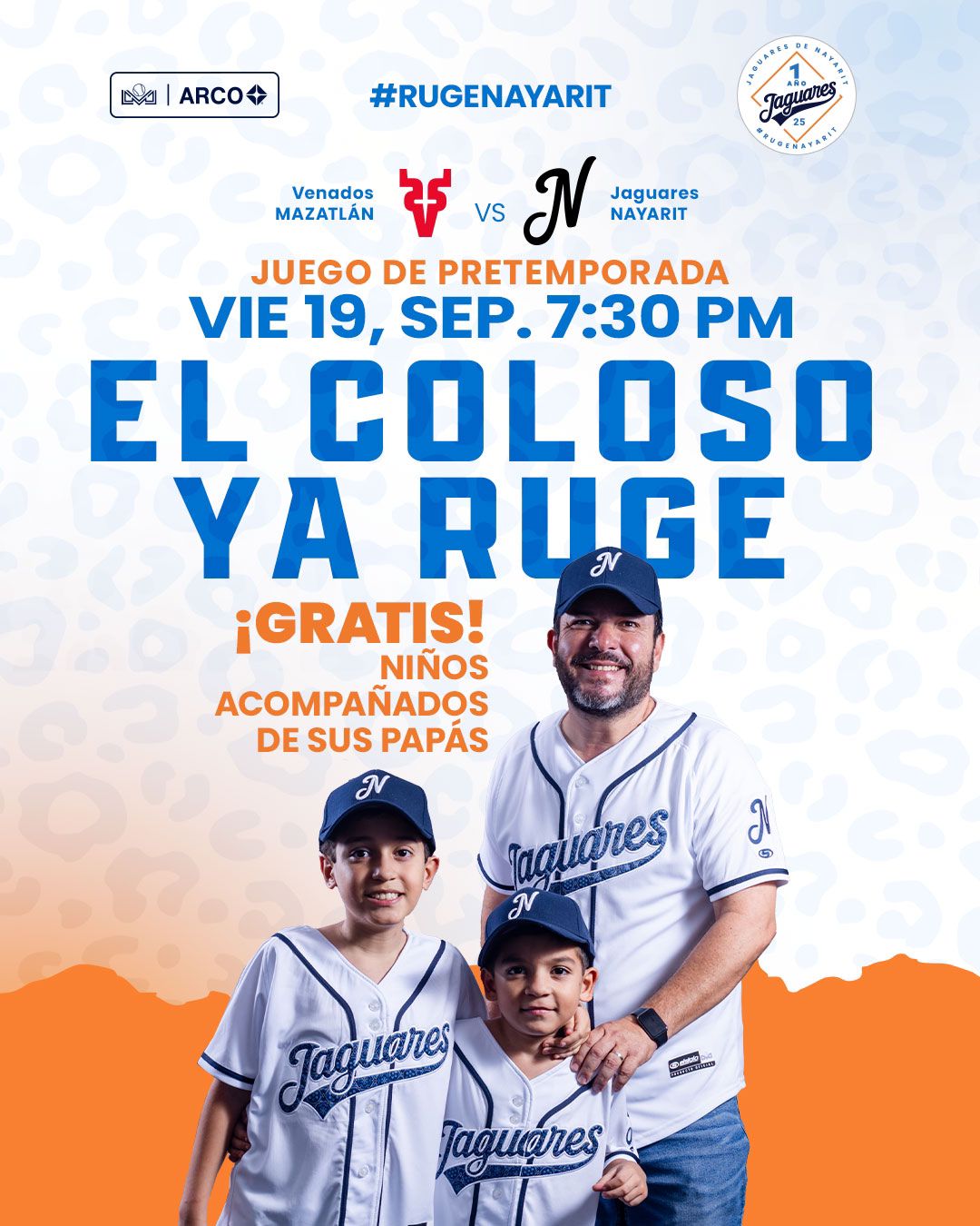 Todos los niños que asistan acompañados de un adulto podrán ingresar sin costo al juego de pretemporada entre los Jaguares de Nayarit 🐾 y los Venados de Mazatlán 🦌.