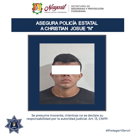 Christian Josué “N”, de 23 años de edad, en la colonia Los sauces, asegurándole un envoltorio de plástico conteniendo en el interior una sustancia cristalina y granulada con las características propias de la droga conocida como cristal.