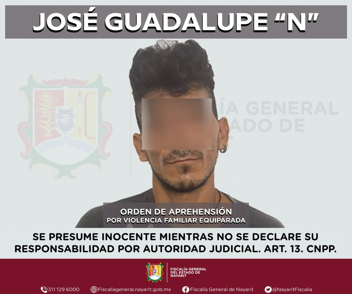 La Fiscalía General de Nayarit a través de la Agencia de Investigación Criminal ejecutó una orden de aprehensión en la localidad Zacualpan, municipio de Compostela contra José Guadalupe “N”, por su probable participación en hechos que para la ley configuran el delito de violencia familiar equiparada, cometido en agravio de una mujer de identidad reservada.