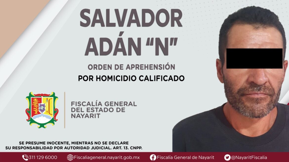 La Fiscalía General del Estado a través de la Agencia de Investigación Criminal dio cumplimiento a una orden de aprehensión en el municipio de Ixtlán del Río contra Salvador Adán “N”, por su presunta participación en hechos que según apreciación de la ley configuran el delito de homicidio calificado, cometido en agravio de una persona de sexo masculino de identidad reservada.