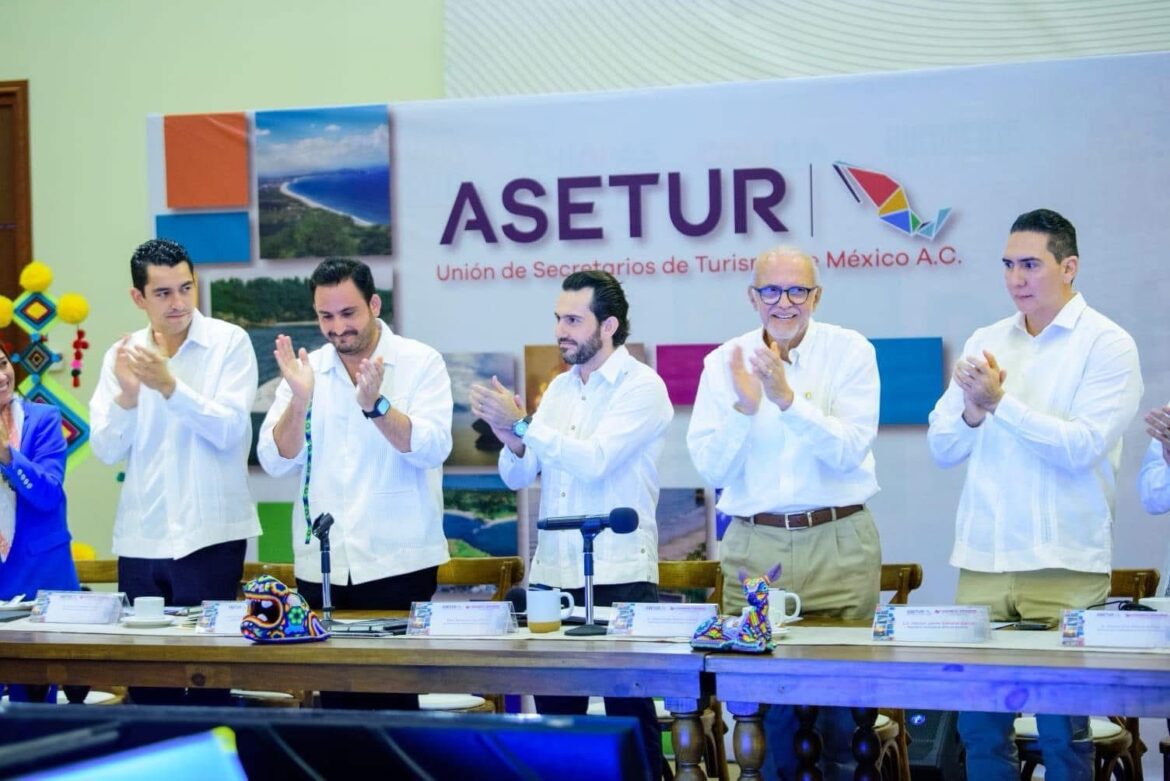 Desde el Hotel-Escuela «Gran Nayar», de la Universidad Tecnológica de Bahía de Banderas, el gobernador del estado, Miguel Ángel Navarro Quintero, clausuró los trabajos de la 59° Asamblea Ordinaria de la Unión de Secretarios de Turismo A.C (ASETUR), donde además tomó protesta al nuevo comité, destacando la importancia del turismo en Nayarit y en todo el país.