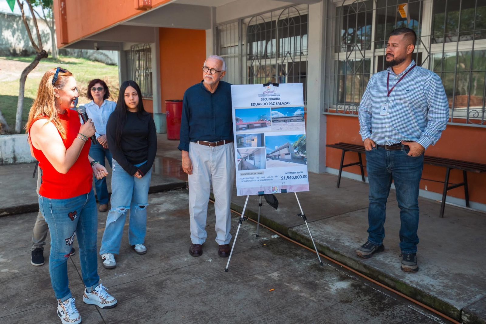 En este plantel, la administración a su cargo construyó dos aulas en el segundo nivel y, además, el ejecutivo estatal se comprometió a entregar computadoras, instruyó la realización de un diagnóstico de la red eléctrica y ordenó la colocación de piso en tres aulas.