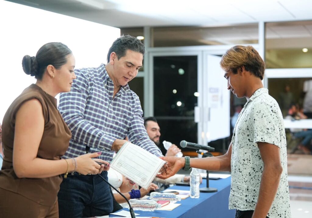 Durante la Rendición de cuentas, autoridades municipales hicieron entrega oficial del documento al joven Ismael, lo que le permitirá concluir su proceso de inscripción y participar en las Olimpiadas CONADE.