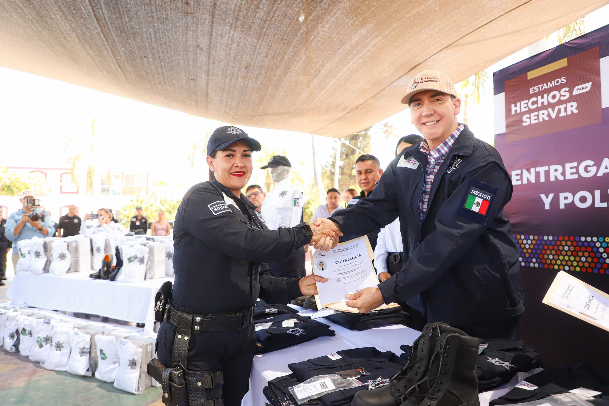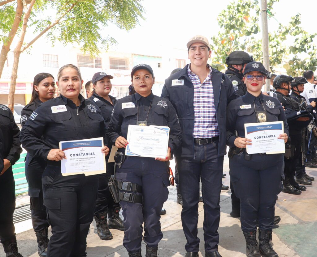 Durante el evento, también se entregaron constancias de profesionalización a agentes que concluyeron cursos de formación inicial, competencias básicas, modelo de seguridad ciudadana y protocolos de derechos humanos.
