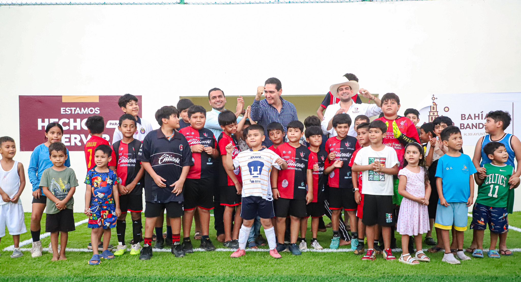 En un ambiente de entusiasmo y participación ciudadana, el presidente municipal Héctor Santana encabezó la entrega de la nueva cancha de futbol rápido en el fraccionamiento Jardines del Sol, reafirmando su compromiso con el deporte, la juventud y la recuperación de espacios públicos dignos para todas las familias de Bahía De Banderas.