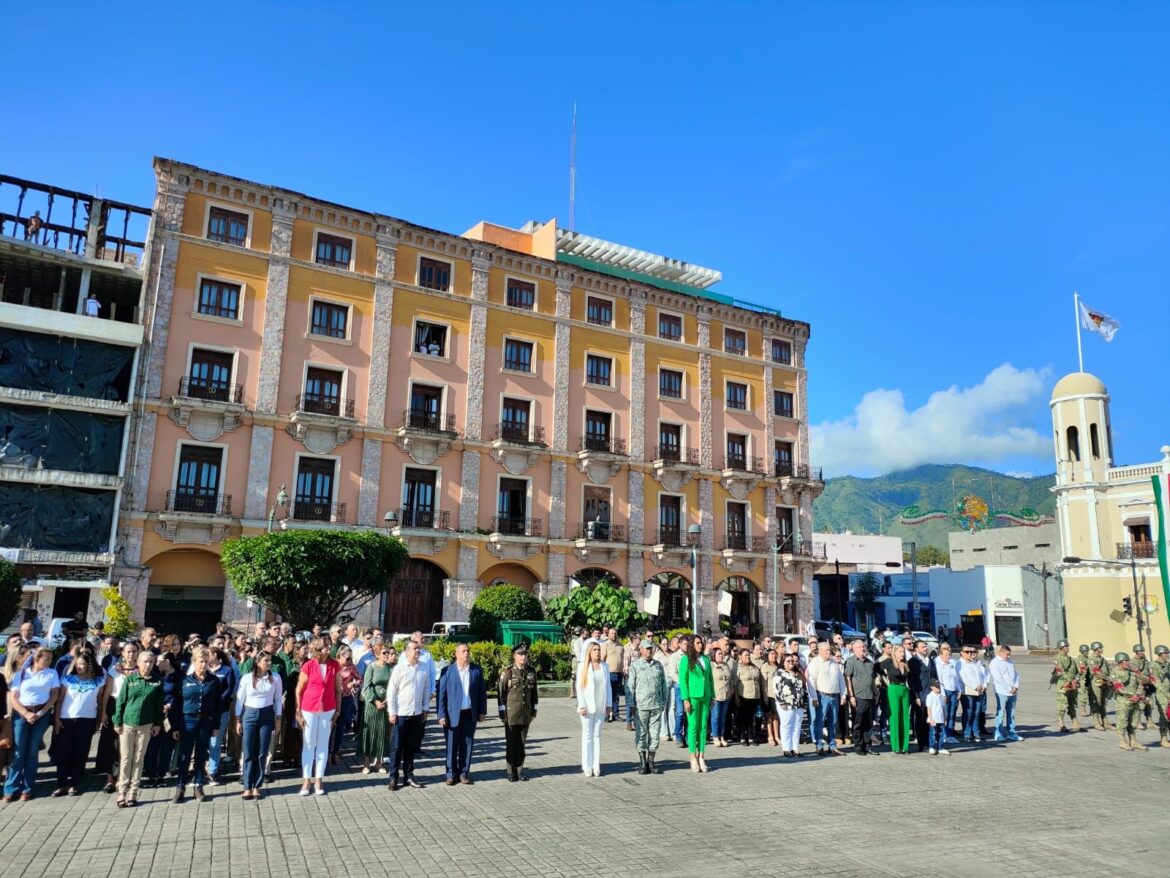 En representación del gobernador del estado, Miguel Ángel Navarro Quintero, la secretaria general de Gobierno, Rocío Esther González García, encabezó este sábado a temprana hora, el Izamiento de nuestro Lábaro Patrio en la Plaza Benito Juárez de Tepic, estuvo acompañada por funcionarios de estado y representantes del Ejército Mexicano, Secretaría de Marina y Guardia Nacional.