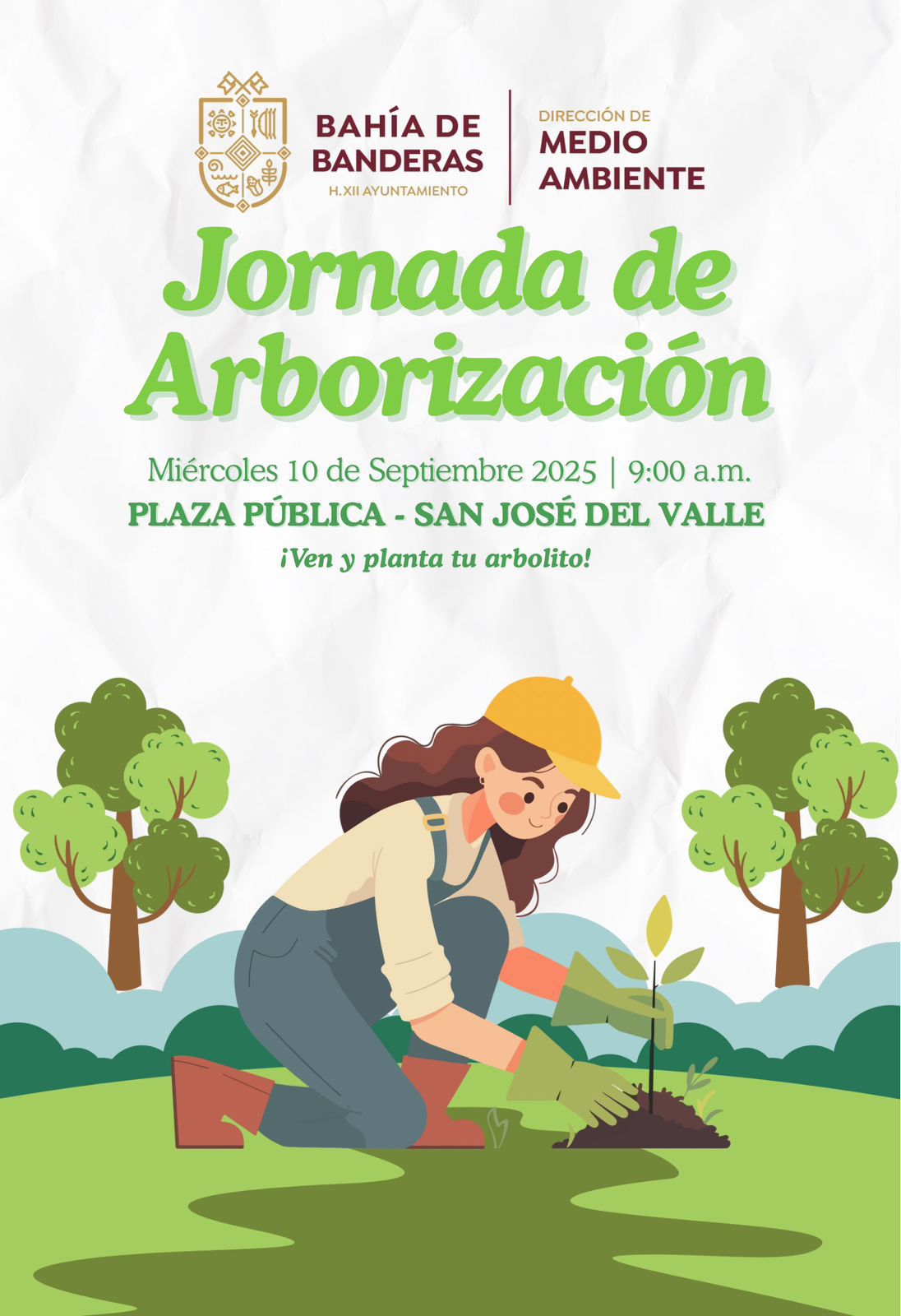 Se invita a la ciudadanía a unirse a la Jornada de Arborización organizada por el H. XII Ayuntamiento de Bahía de Banderas y la Dirección de Medio Ambiente.