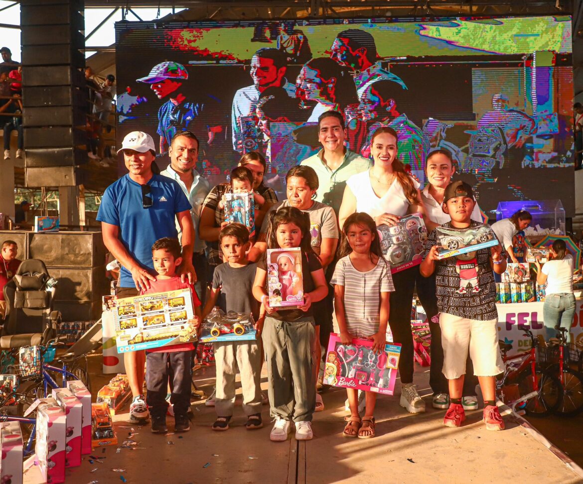 Entre risas y emoción, niñas y niños recibieron sorpresas como bicicletas, consolas de videojuegos, laptops, sillas gamers, libritos para colorear, y alimentos para disfrutar en familia. “Lo que vayan a ver en el cuadrilátero no hay que hacerlo en casa”, advirtió el alcalde entre risas.