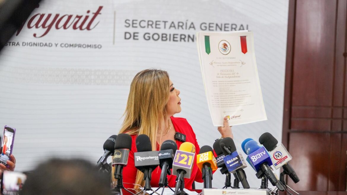 La secretaria general de Gobierno, Rocío Esther González García, sostuvo hoy un encuentro con medios de comunicación, donde dio a conocer las actividades que el gobierno del estado de Nayarit, encabezado por Miguel Ángel Navarro Quintero, ha preparado para conmemorar el 214 aniversario de la Independencia de México, del 13 al 16 de septiembre. Estas festividades buscan unir a la ciudadanía en un ambiente de respeto, patriotismo y convivencia familiar.