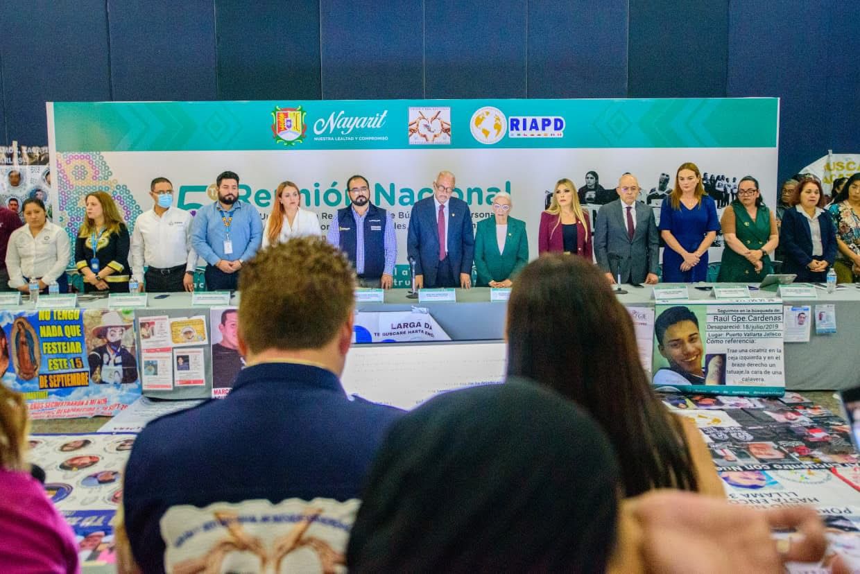 El gobernador Miguel Ángel Navarro Quintero, junto a su esposa, la presidenta del Sistema DIF Nayarit, doctora Beatriz Estrada Martínez, encabezó la 5ª Reunión Nacional de Búsqueda de Personas, con la participación de más de 60 colectivos de 18 estados del país.